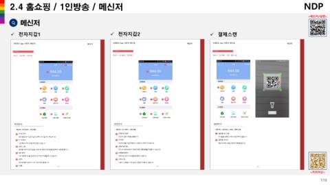 2.4 홈쇼핑 / 1인방송 / 메신저 <메신저/설명> 메신저 ✓ 전자지갑1 ✓ 전자지갑2 ✓ 결제스캔 <커피머신> 116
